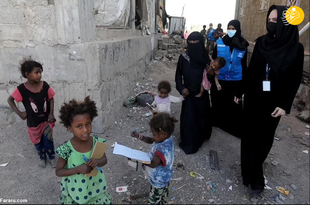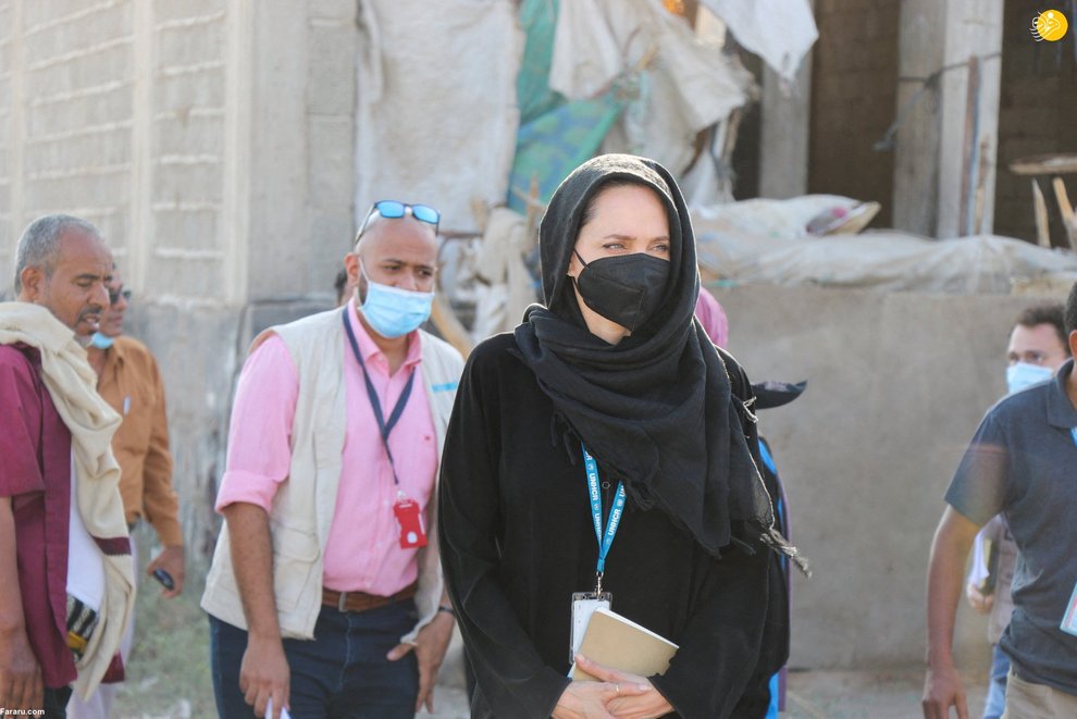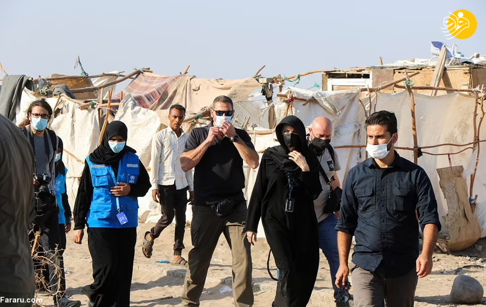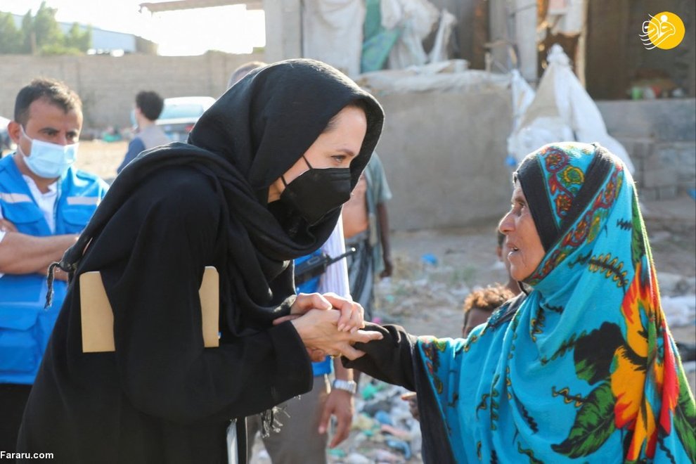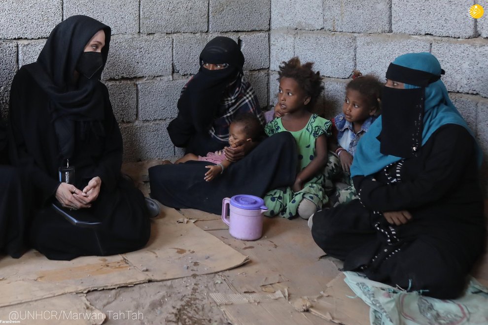اندوه آنجلینا جولی در میان خانواده‌های آواره یمنی/ عکس