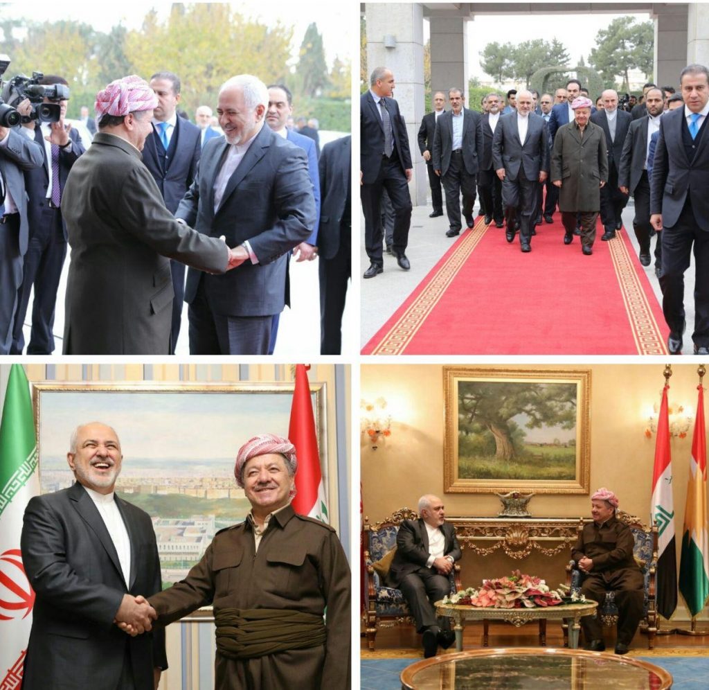 دکتر محمد جواد ظریف وزیر امور خارجه جمهوری اسلامی ایران ظهر امروز در اربیل با مسعود بارزانی، رئیس حزب دمکرات کردستان عراق دیدار و گفت وگو کرد. طرفین در این دیدار با ابراز خرسندی از روابط کنونی اقلیم و جمهوری اسلامی ایران، از بسط و توسعه آن، به ویژه با افزایش همکاری های بازرگانی و اقتصادی، از طریق مشارکت و همکاری های تجار، صنعتگران و کارآفرینان دو طرف حمایت کردند.
