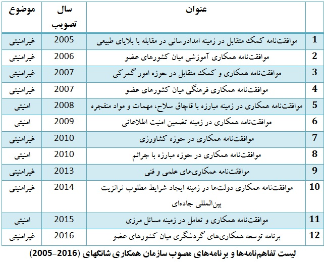 در عین حال در لیست اسناد امضا شده توسط شورای سران طی سالهای ۲۰۱۹ و ۲۰۲۰ نیز موارد متعددی از تفاهمنامههای داخلی در حوزههای غیرامنیتی وجود دارد. این موضوع به خوبی نشانگر مزیتهای نسبی این سازمان در زمینه توسعه همکاریهای راهبردی و نیز اقتصادی است که باتوجه به شرایط فعلی جمهوری اسلامی ایران در مقابله با تحریمهای ایالات متحده آمریکا و بازیابی اقتصاد پسابرجام برای داشتن دست برتر در ادامه توافق هستهای و نیز مذاکرات وین، بسیار حائز اهمیت است.