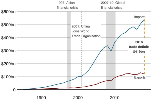 در سال ۲۰۰۱ مجموع مبادلات تجاری چین و آمریکا حدود ۱۲۰ میلیارد دلار بود که این رقم تا پایان سال ۲۰۱۵ به بیش از ۶۰۰ میلیارد دلار رسیده بود. حتی بحران مالی جهانی در بازه سالهای ۲۰۰۷ تا ۲۰۱۰ نیز نتوانست بر این روند تأثیر محسوس و جدی بگذارد. این روند به خوبی نشانگر موفقیت استراتژی ظهور مسالمتآمیز است که طبیعتاً پکن خواستار ایجاد خلل در آن از طریق ورود به تقابلهای ایران-آمریکا نبود.
