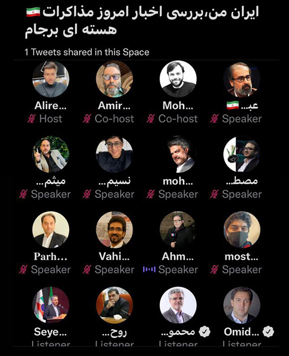 سه شنبه شب برای اولین بار در اسپیس توئیتر رومی در مورد برجام توسط آقای مهاجری زده شده بود که برایم جالب بود شرکت کردم ولی چون به نحوه کار آن اشنا نبودم صحبت نکردم.