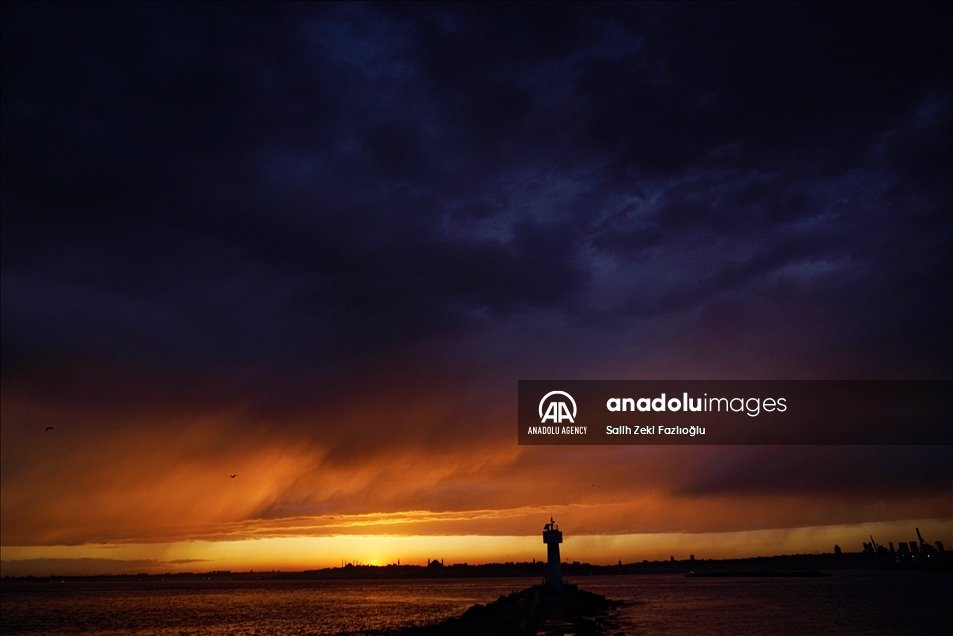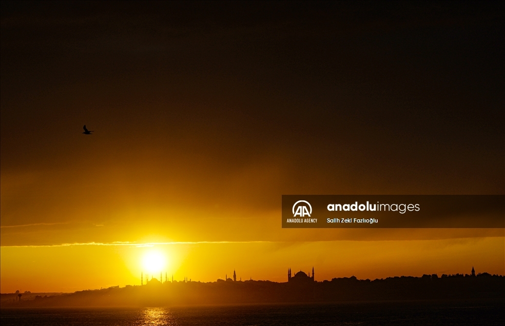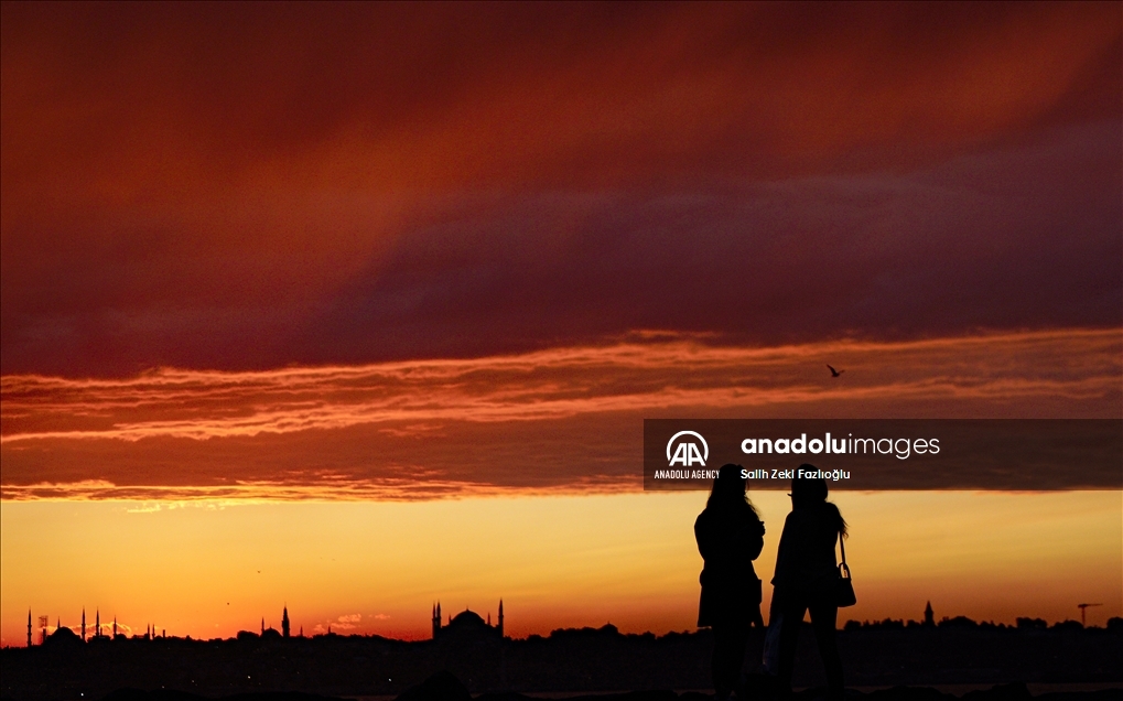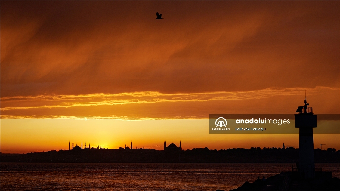 غروب آفتاب همراه با مناظر سواحل استانبول تصاویر بی‌نظیری را پدید آورد.