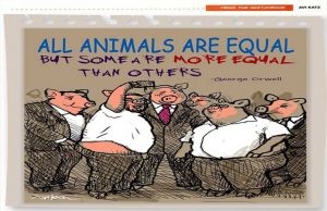به گزارش مدار شرقی به نقل از شفقنا، کاریکاتوریست اسرائیلی که نامش «آوی کاتس» است، بالای کاریکاتورش جمله مسخره ای از «جرج اورول» علیه رژیم شوروی سابق را نوشته و آورده است: همه حیوانات مساوی هستند اما برخی از آنها ارزش بیشتری دارند.