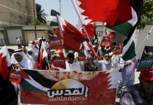 People in Bahrain demonstrated on Thursday night and announced their strong opposition against normalization of ties between Bahrain and Zionist regime.